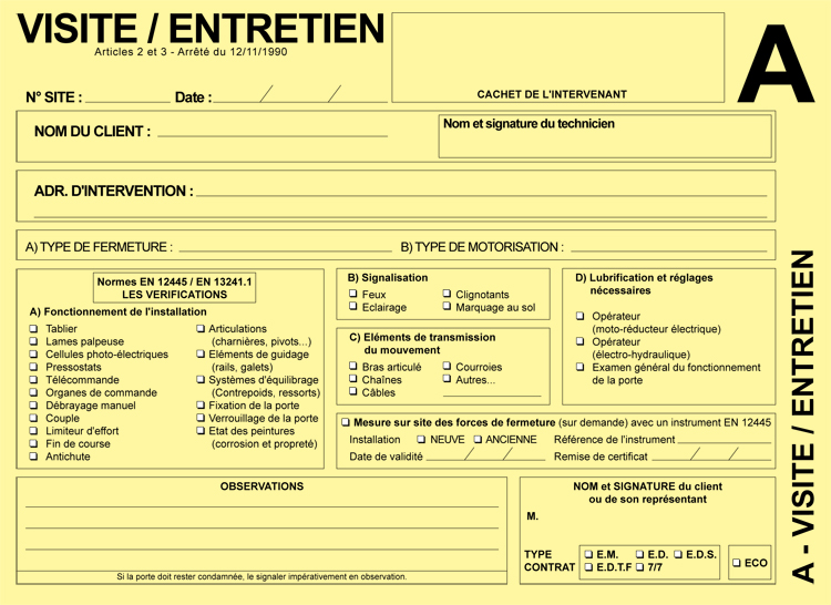 35 feuilles Visite/ Entretien |