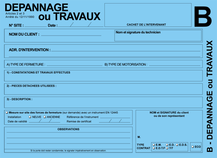 12 feuilles Dépannage /Travaux |